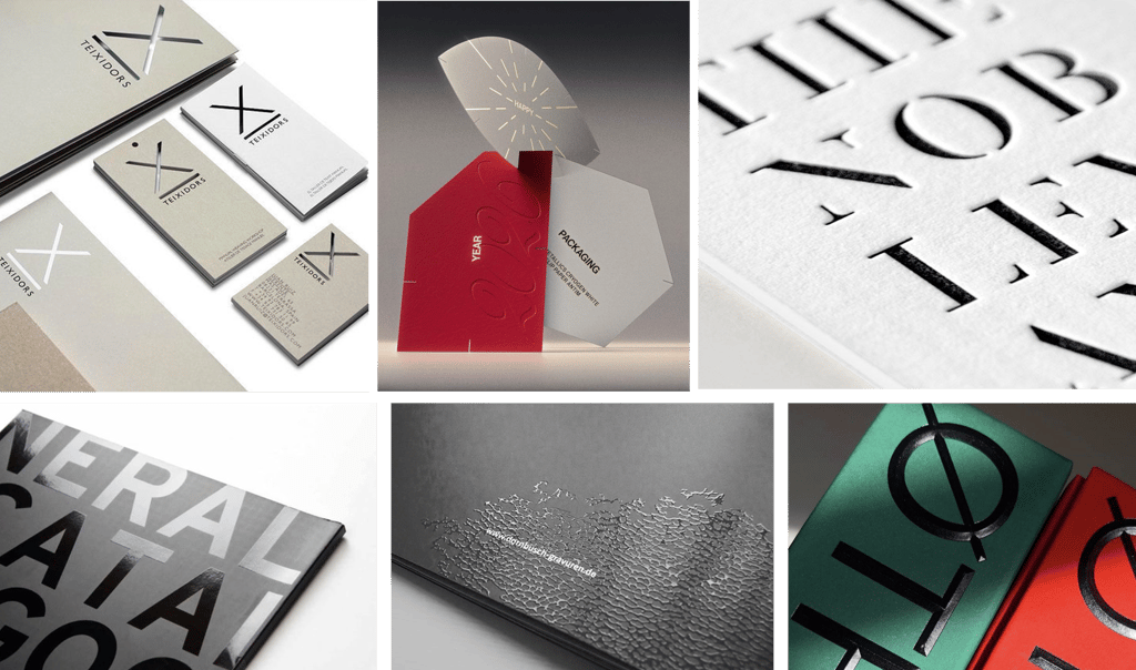 Printing techniques: Foil stamping, embossing/debossing, spot UV, letterpress, all add dimension and elevate the brand persona